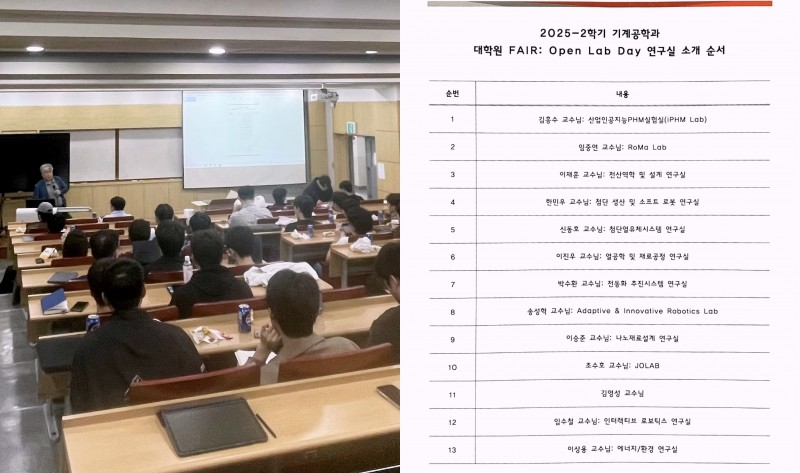 2025 대학원페어 Open Lab Day 페이지 정보 작성자 관리자 조회27회 작성일 25-10-17 15:17 본문 AI-핵심소재 기반 첨단산업 지능형 로봇 글로벌 인재양성 사업단에서는 폭넓은 인재양성과 사업단 홍보를 위해 2025년 10월 17일 원흥관 e127호에서 개최한 2025 대학원페어 Open Lab Day 행사에 참여교수 및 참여대학원생이 함께 참석하여 연구성과 및 비전을 공유하였습니다. 목록